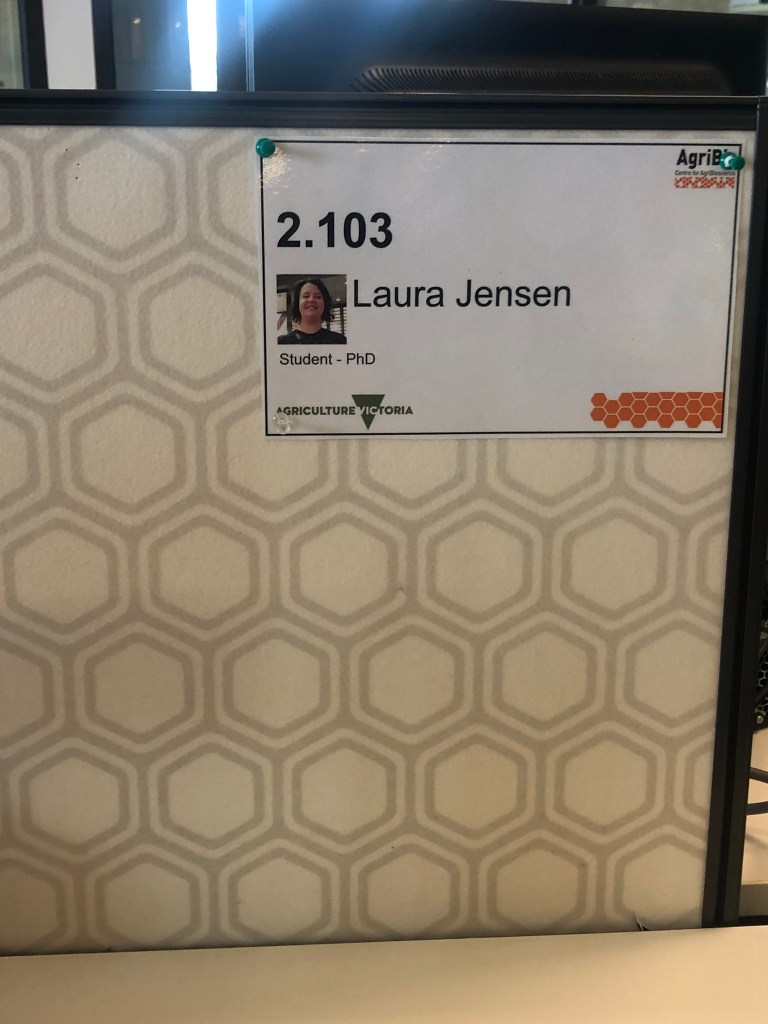 I started my PhD program at La Trobe University earlier this month. My PhD is in collaboration with Agriculture Victoria Research, so I get to have a fun official government email in addition to my student one. My desk is in AgriBio and the building is a step up from the security I’ve been accustom to at previous universities (I need a pass to get through 3 locked doors to reach my desk).